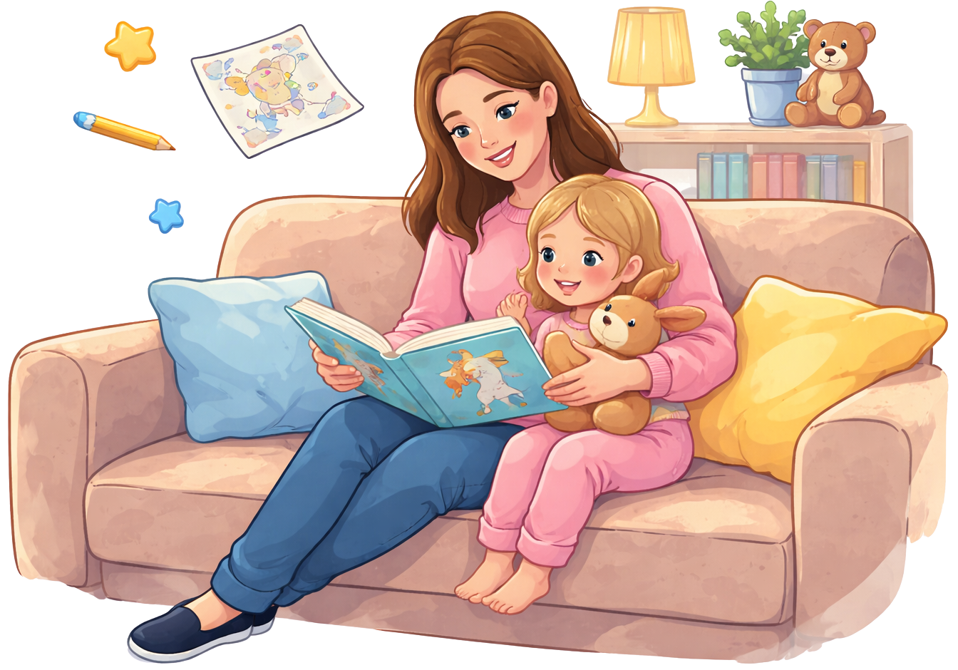 Geschichten fördern Fantasie, Malen bringt Ruhe, gemeinsames Vorlesen schafft Nähe.